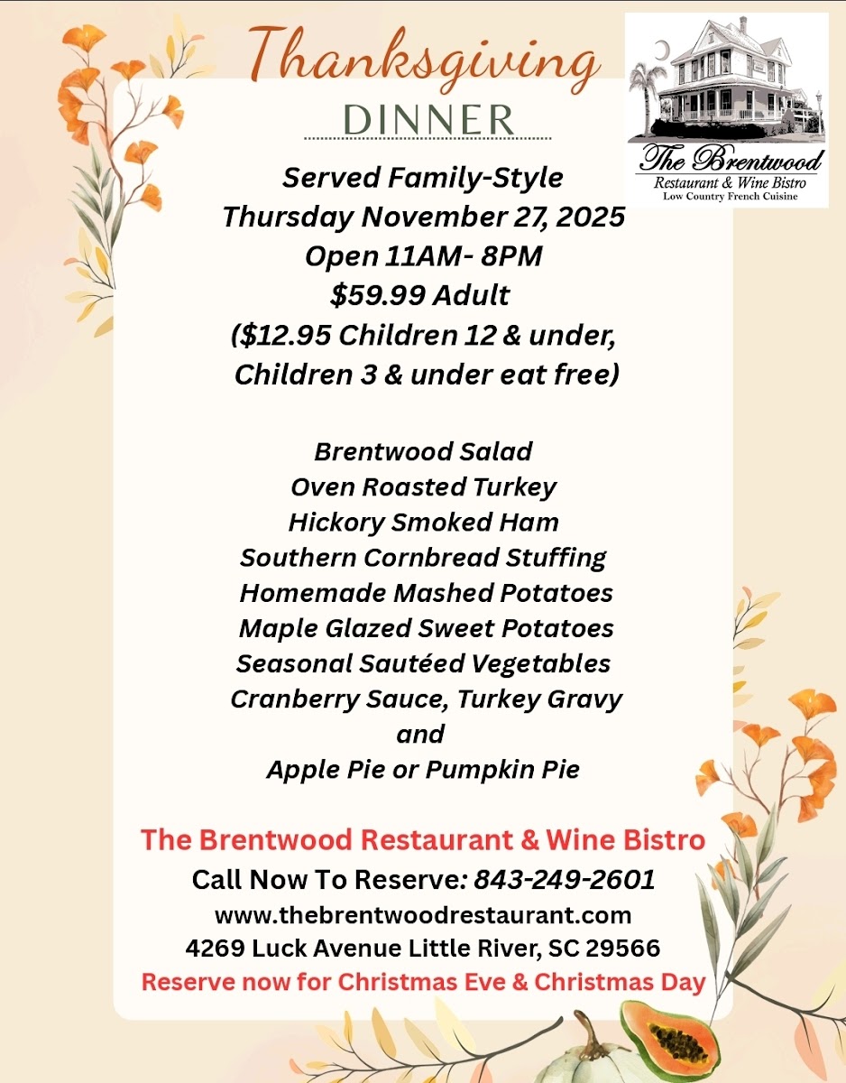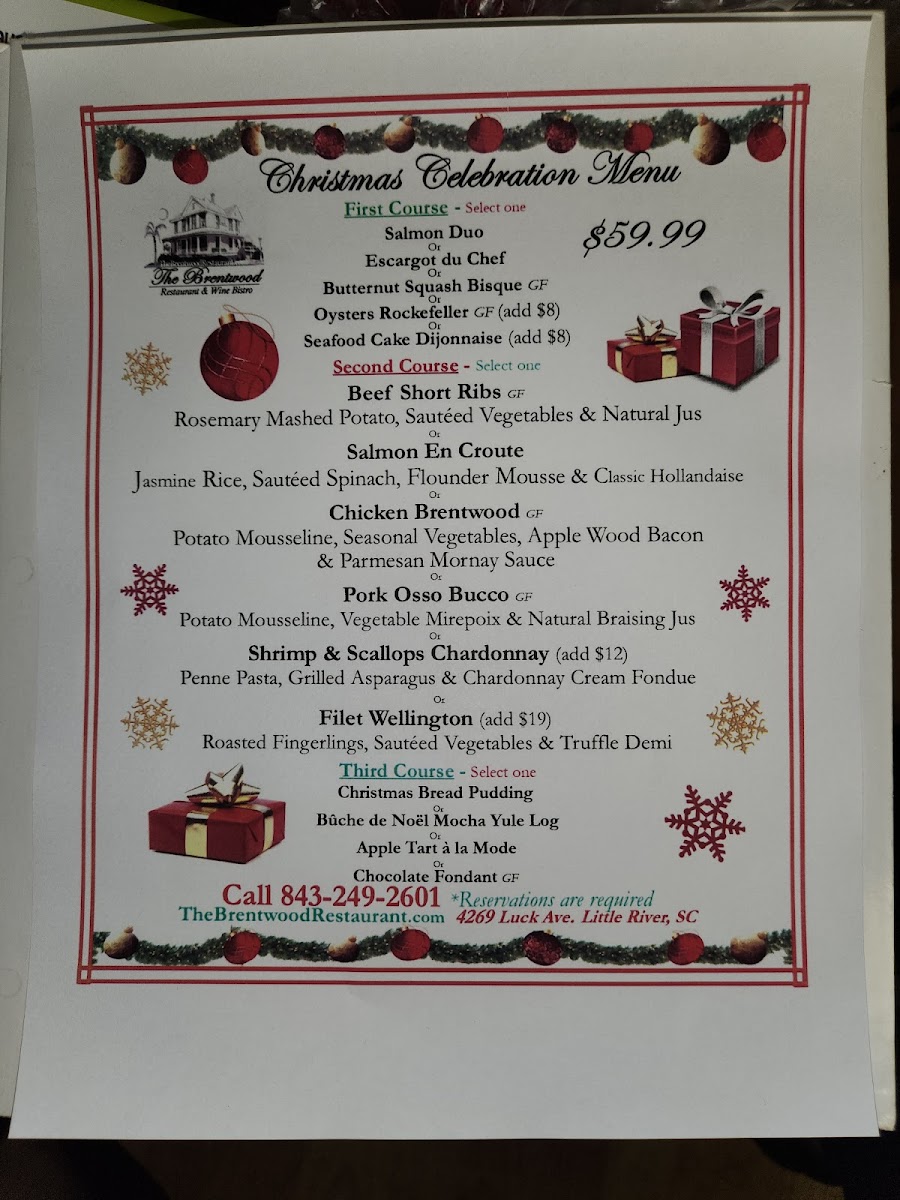 Discover The Brentwood Restaurant & Wine Bistro in Little River, SC—where delightful cuisine meets a cozy atmosphere, perfect for savoring great food and wine with friends and family.